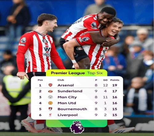 来看最新出炉的英超前六球队,这绝对是不少球迷未曾设想的排名:阿森纳、桑德兰、曼城、曼联、伯恩茅斯、利物浦!