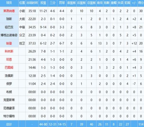 单核带队的里夫斯,投篮22中12,其中三分10中6,罚球22中21狂轰51分11板9助炸裂数据,正负值+22,湖人127-120击败国王。