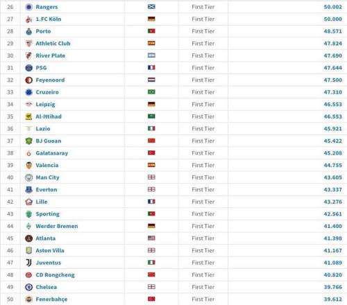 40.曼城 场均43605名观众
