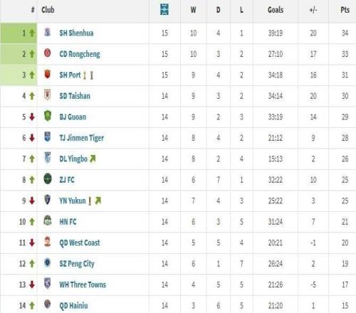 中超最新积分战报5轮1胜!成都从领先到退出争冠上港多申花2分 -