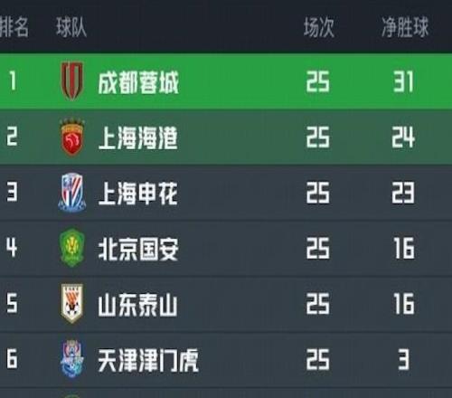 随着蓉城队12,申花队10,中超积分:1队退出争冠,前2相差2分 -